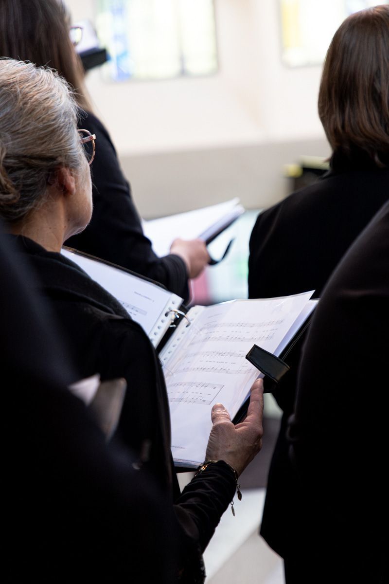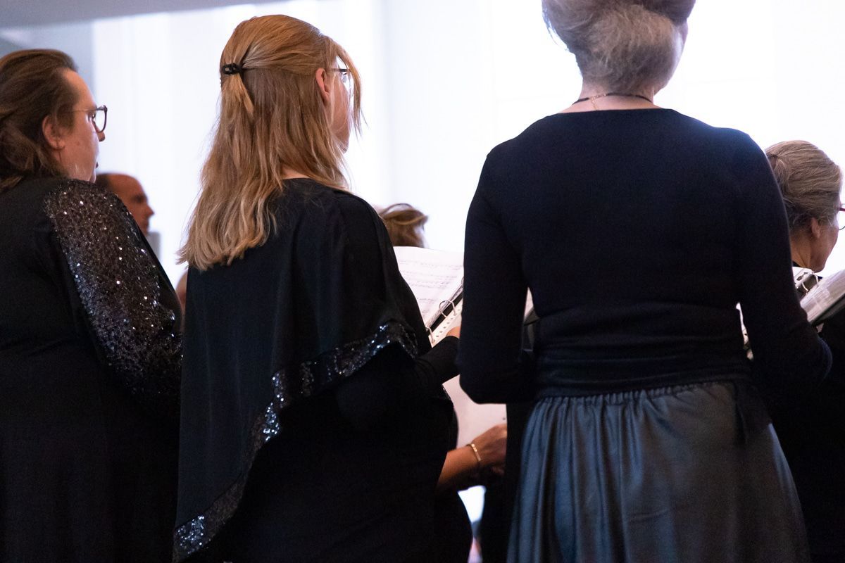 Op de foto's zie je onze koren eerst inzingen. Dit doen wij altijd bij een concert om alle muziek kort door te nemen en alvast in de sfeer te komen. Tussendoor, als je als koorlid niet hoeft te zingen is er lekker een kopje koffie of thee verkrijgbaar.
